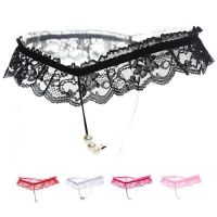 (情趣内衣)激情蕾丝开裆T裤女性低腰透明内裤蕾丝按摩开档性感丁字裤(白色)